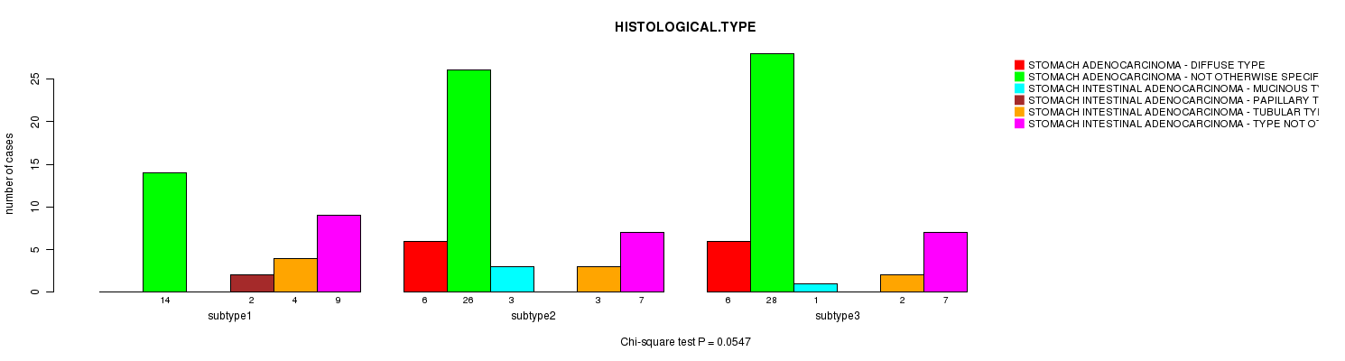 | HISTOLOGICAL TYPE | Chi-square test | 0.133 | 0.176 | 0.107 | 0.000364 | 0.0547 |