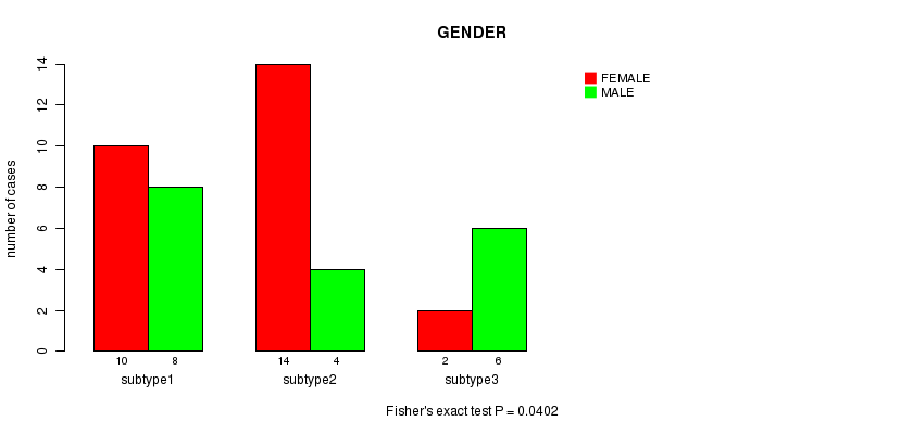 Figure S5. Get High-res Image Clustering Approach #2: 'MIRseq cHierClus subtypes' versus Clinical Feature #2: 'GENDER'