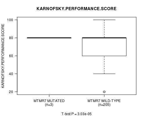 MTMR7 mutation correlated to 'KARNOFSKY.PERFORMANCE.SCORE'.