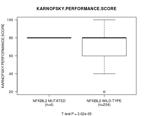 NFKBIL2 mutation correlated to 'KARNOFSKY.PERFORMANCE.SCORE'.