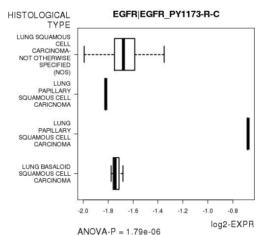 Figure S4. Get High-res Image As an example, this figure shows the association of EGFR|EGFR_PY1173-R-C to 'HISTOLOGICAL.TYPE'. P value = 1.79e-06 with ANOVA analysis.
