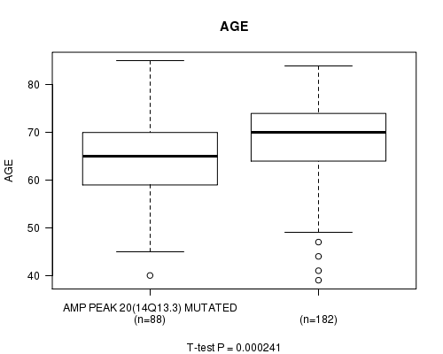 Amp Peak 20(14q13.3) cnvs correlated to 'AGE'.