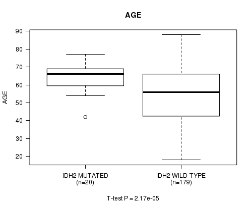 Figure S1. Get High-res Image Gene #2: 'IDH2 MUTATION STATUS' versus Clinical Feature #2: 'AGE'