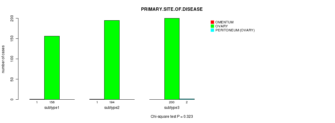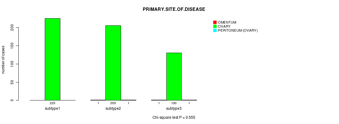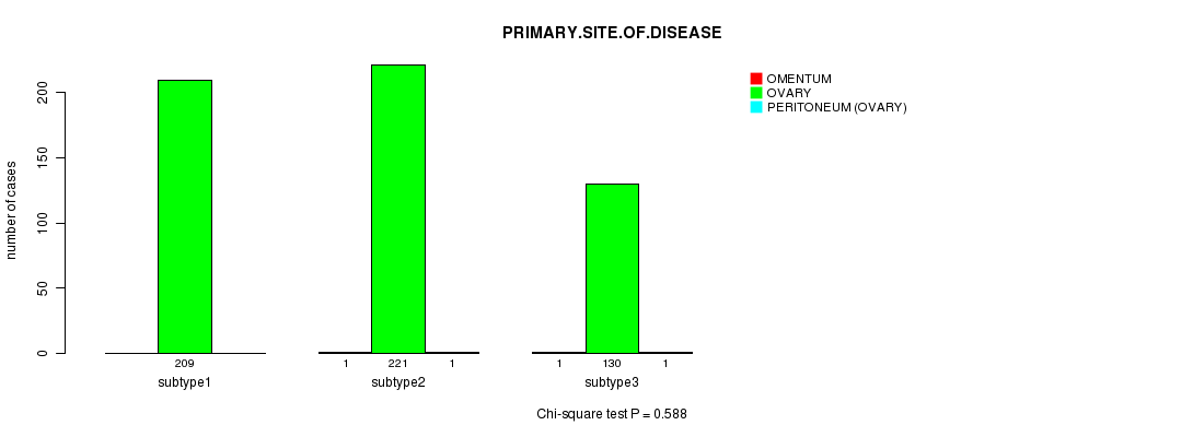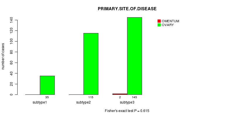 Figure S3. Get High-res Image Clustering Approach #1: 'mRNA CNMF subtypes' versus Clinical Feature #3: 'PRIMARY.SITE.OF.DISEASE'