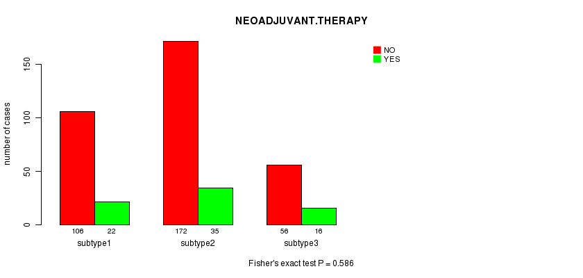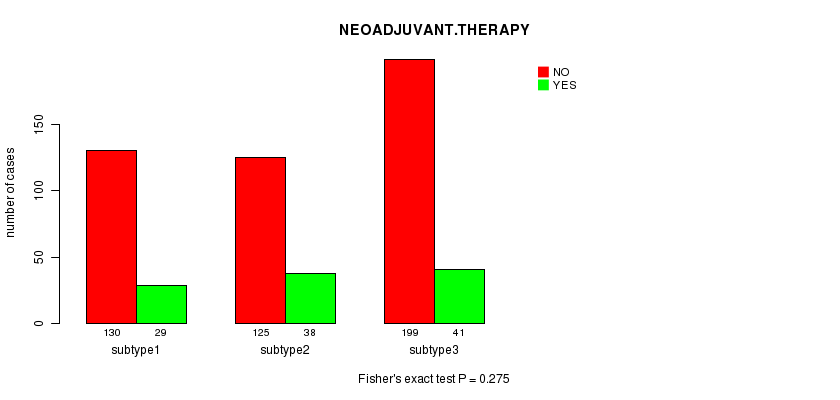Figure S7. Get High-res Image Clustering Approach #1: 'mRNA CNMF subtypes' versus Clinical Feature #7: 'NEOADJUVANT.THERAPY'
