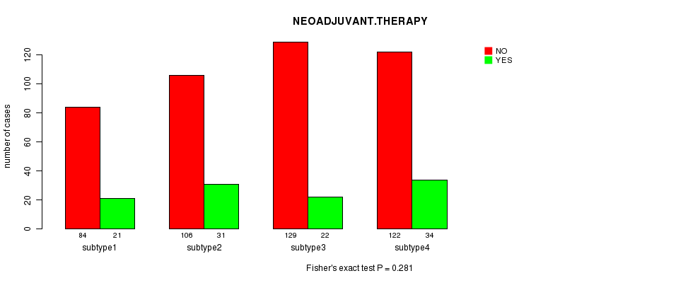 Figure S77. Get High-res Image Clustering Approach #11: 'MIRseq CNMF subtypes' versus Clinical Feature #7: 'NEOADJUVANT.THERAPY'