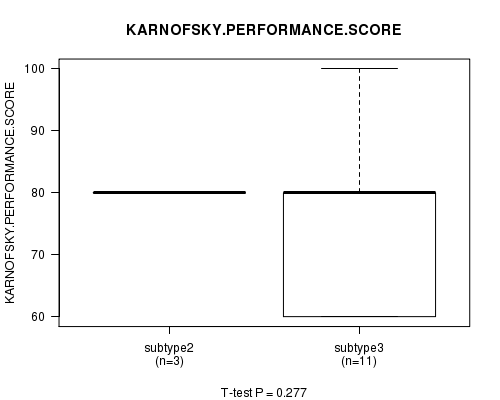Figure S81. Get High-res Image Clustering Approach #12: 'MIRseq cHierClus subtypes' versus Clinical Feature #4: 'KARNOFSKY.PERFORMANCE.SCORE'
