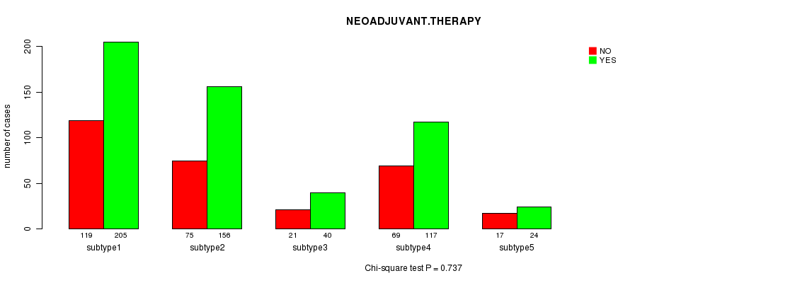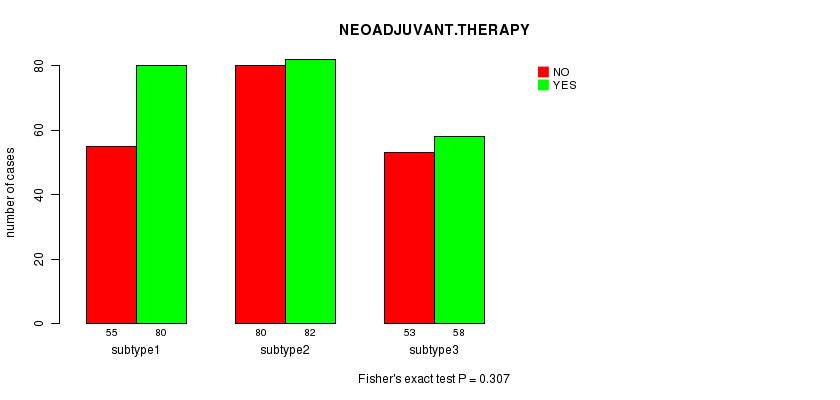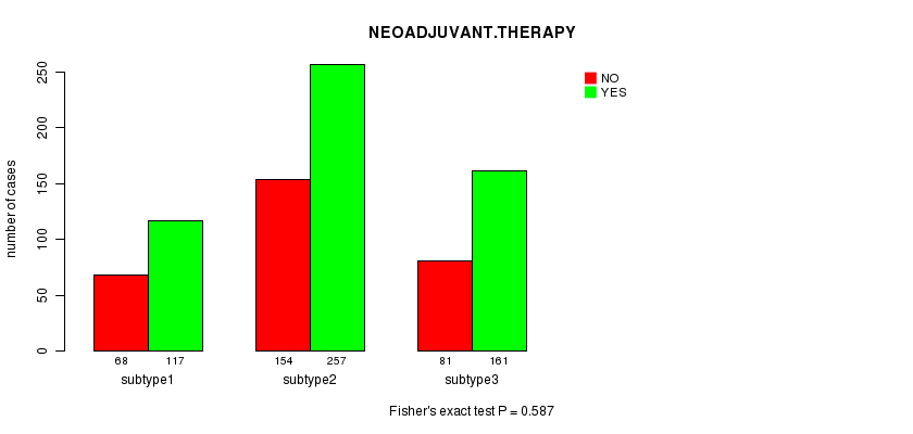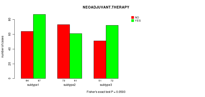 Figure S40. Get High-res Image Clustering Approach #8: 'RNAseq cHierClus subtypes' versus Clinical Feature #5: 'NEOADJUVANT.THERAPY'