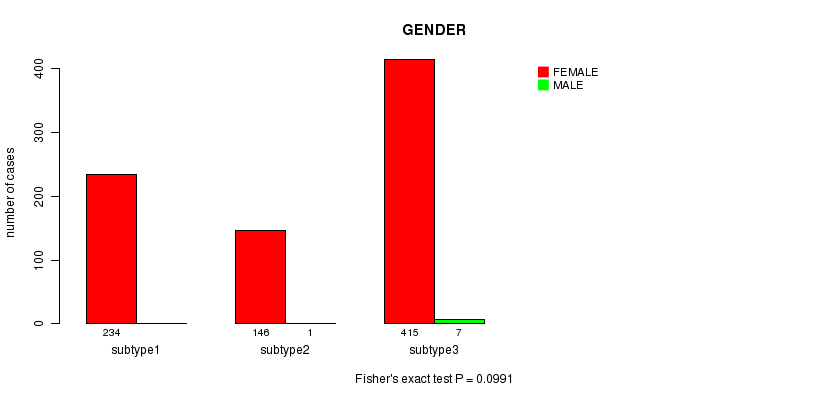 Figure S43. Get High-res Image Clustering Approach #9: 'MIRseq CNMF subtypes' versus Clinical Feature #3: 'GENDER'