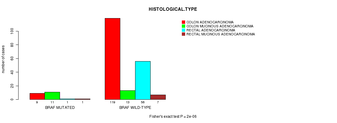 BRAF mutation correlated to 'HISTOLOGICAL.TYPE'.