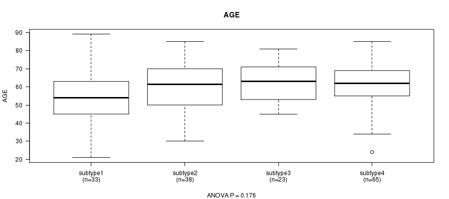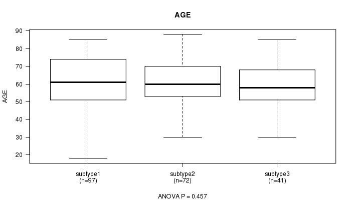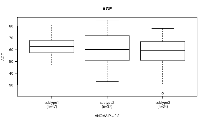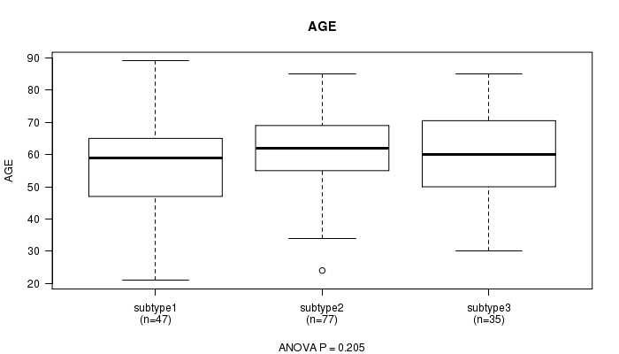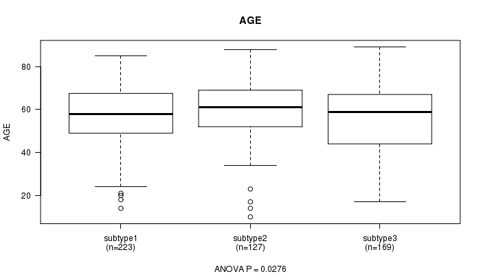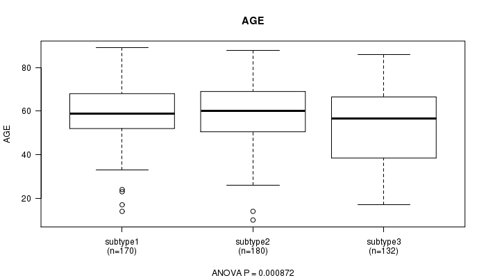 Consensus hierarchical clustering analysis on array-based mRNA expression data identified 3 subtypes that correlate to 'AGE'.