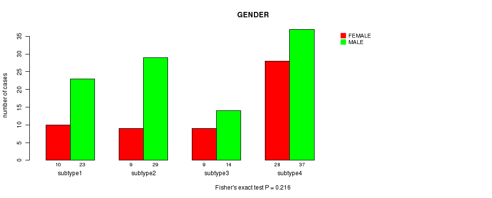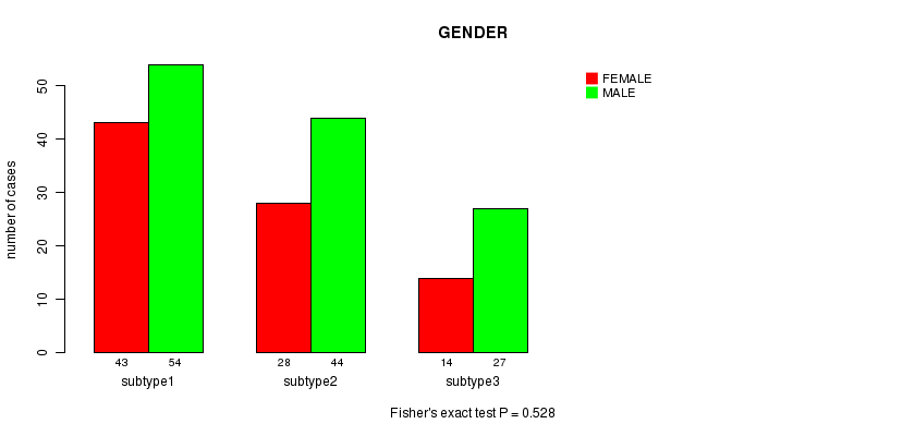 Figure S51. Get High-res Image Clustering Approach #9: 'RNAseq CNMF subtypes' versus Clinical Feature #3: 'GENDER'