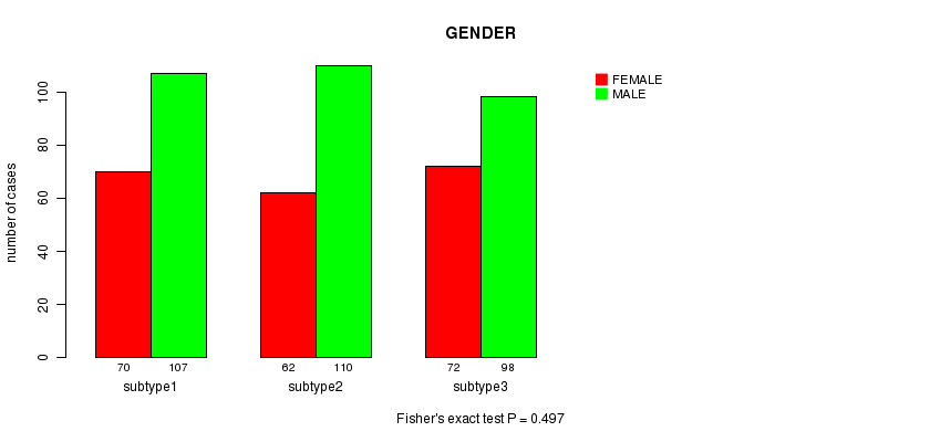 Figure S57. Get High-res Image Clustering Approach #10: 'RNAseq cHierClus subtypes' versus Clinical Feature #3: 'GENDER'