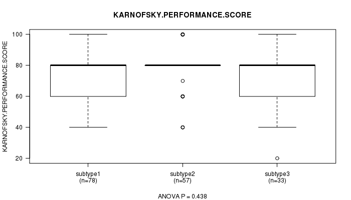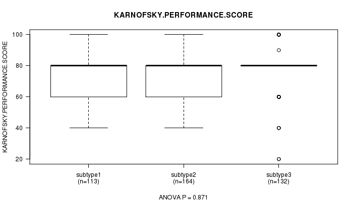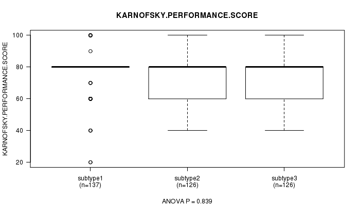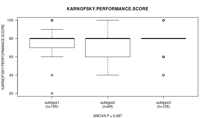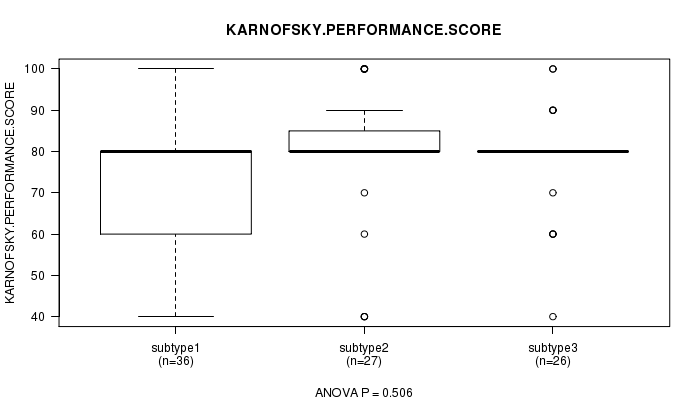 Figure S4. Get High-res Image Clustering Approach #1: 'mRNA CNMF subtypes' versus Clinical Feature #4: 'KARNOFSKY.PERFORMANCE.SCORE'
