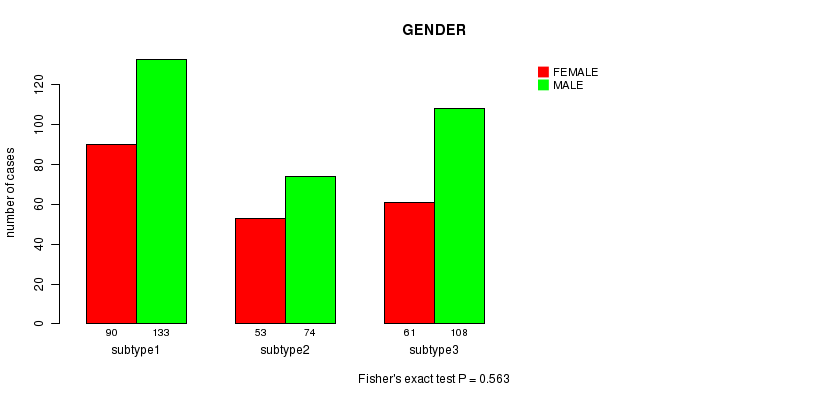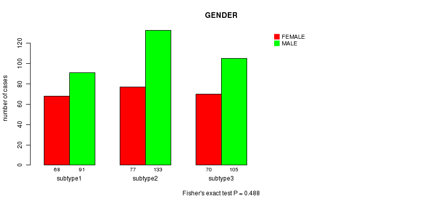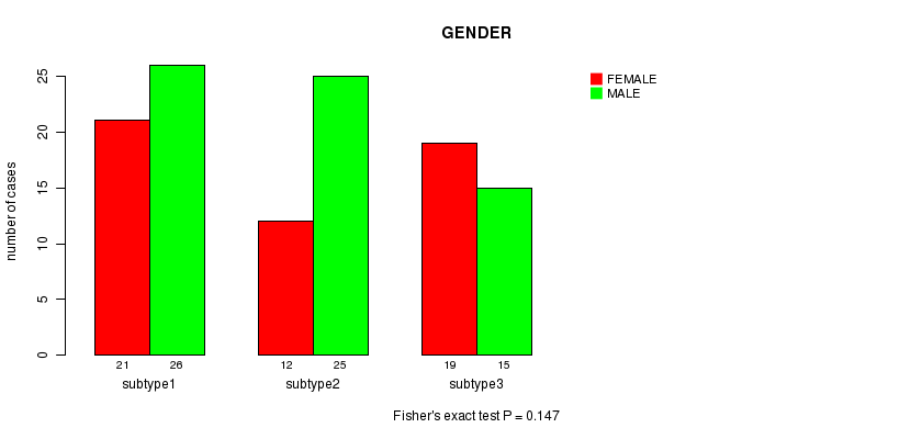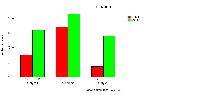 CNMF clustering analysis on sequencing-based mRNA expression data identified 3 subtypes that correlate to 'GENDER'.