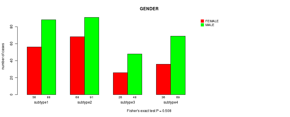Table S4. Clustering Approach #1: 'mRNA CNMF subtypes' versus Clinical Feature #3: 'GENDER'