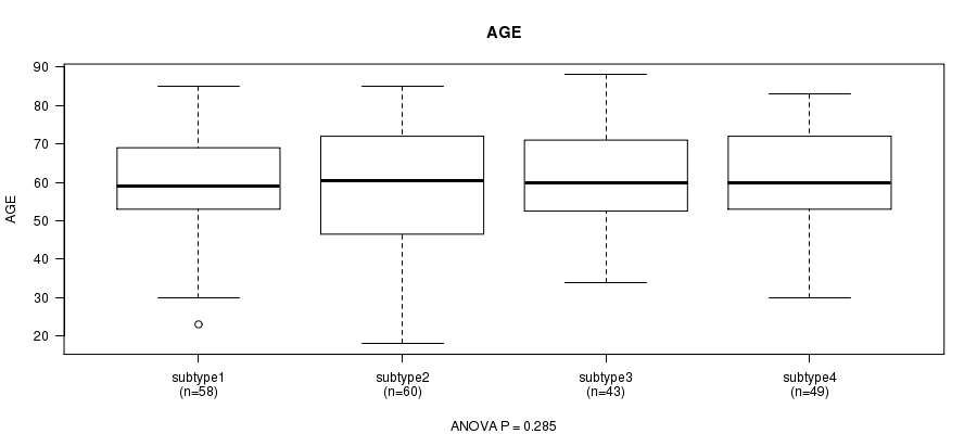Table S59. Clustering Approach #9: 'RNAseq CNMF subtypes' versus Clinical Feature #2: 'AGE'