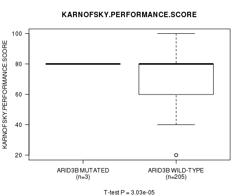 ARID3B mutation correlated to 'KARNOFSKY.PERFORMANCE.SCORE'.
