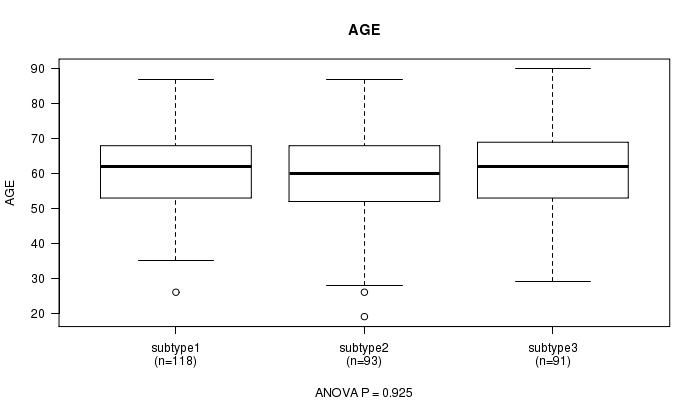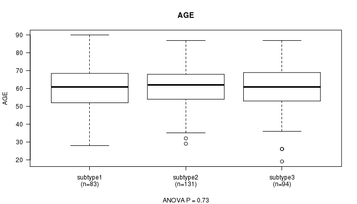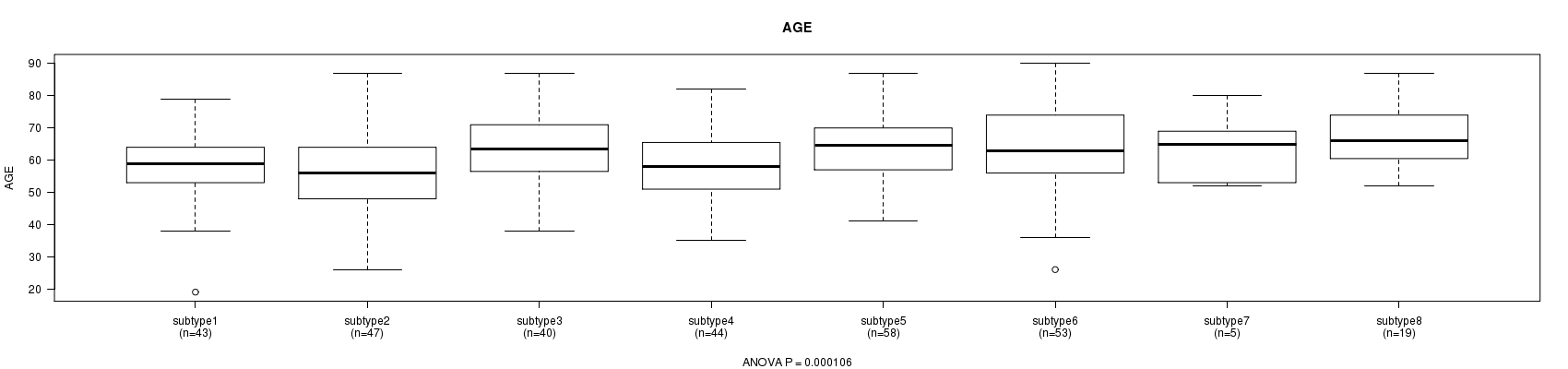 | AGE | ANOVA | 0.000106 | 0.434 | 0.303 | 0.925 | 0.383 | 0.73 | 0.688 |