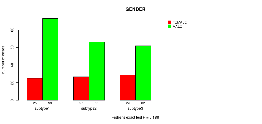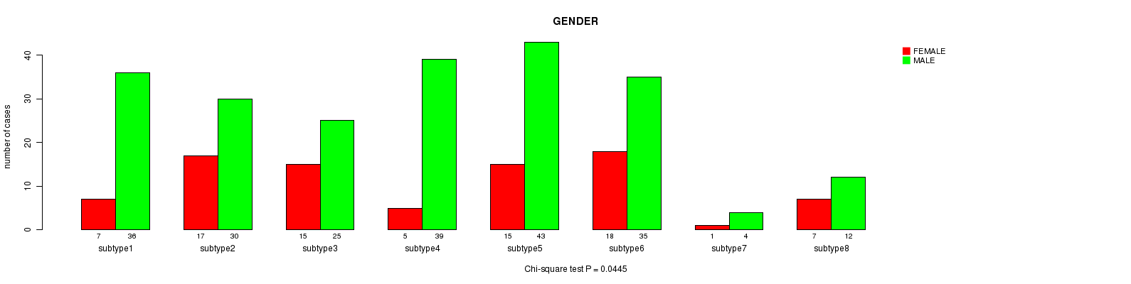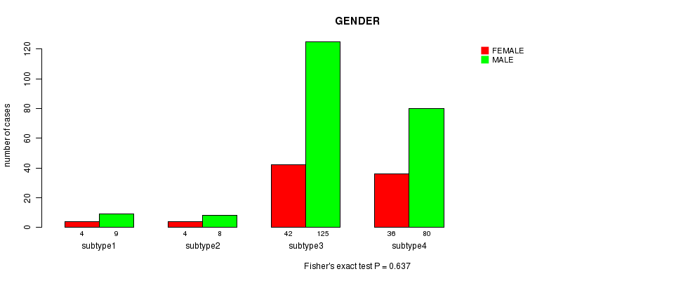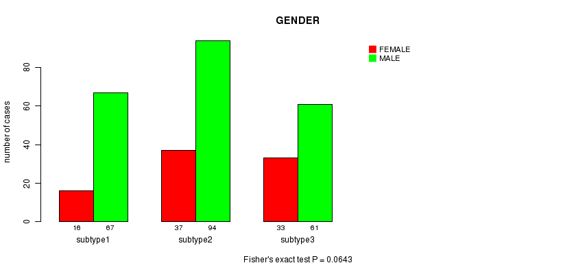| GENDER | Fisher's exact test | 0.0445 | 0.139 | 0.842 | 0.188 | 0.00985 | 0.0643 | 0.637 |