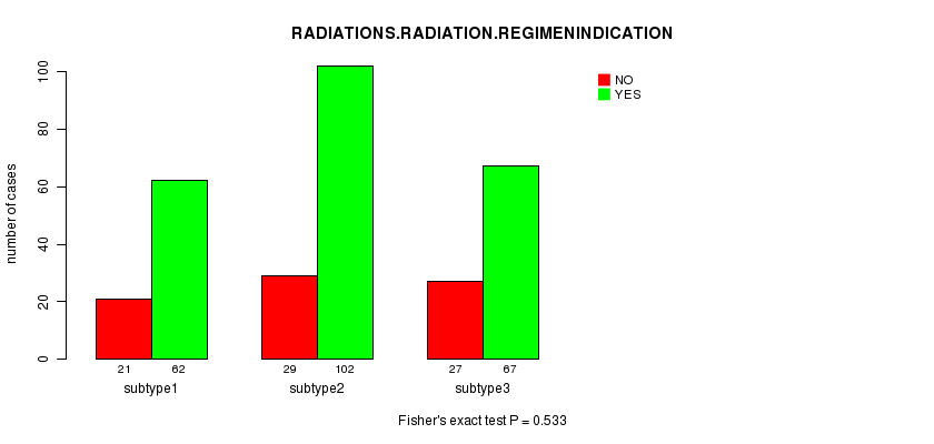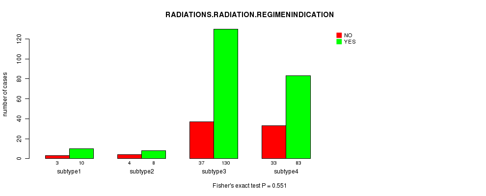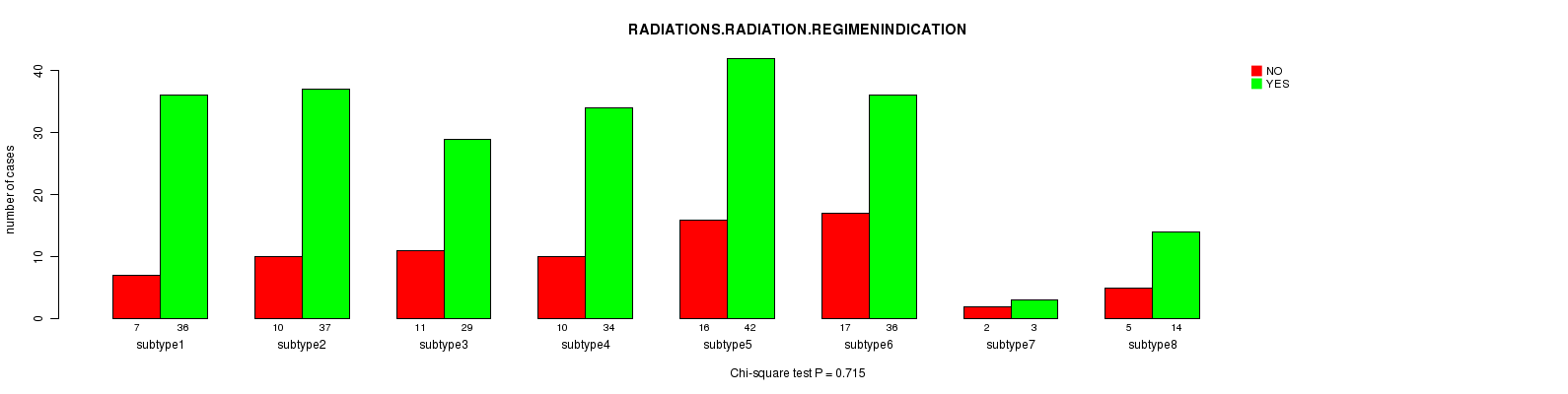 | RADIATIONS RADIATION REGIMENINDICATION | Fisher's exact test | 0.715 | 0.301 | 0.595 | 0.413 | 0.546 | 0.533 | 0.551 |