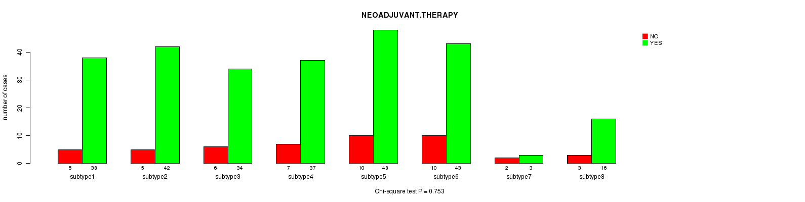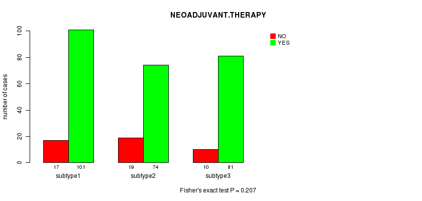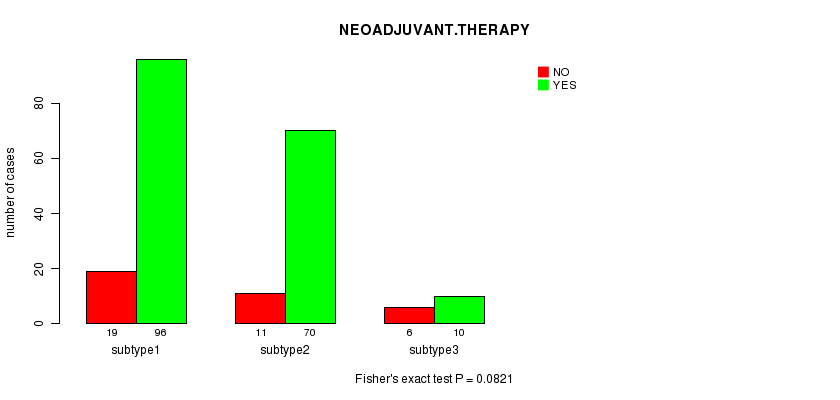 | NEOADJUVANT THERAPY | Fisher's exact test | 0.753 | 0.023 | 0.0821 | 0.207 | 0.068 | 0.689 | 0.0179 |