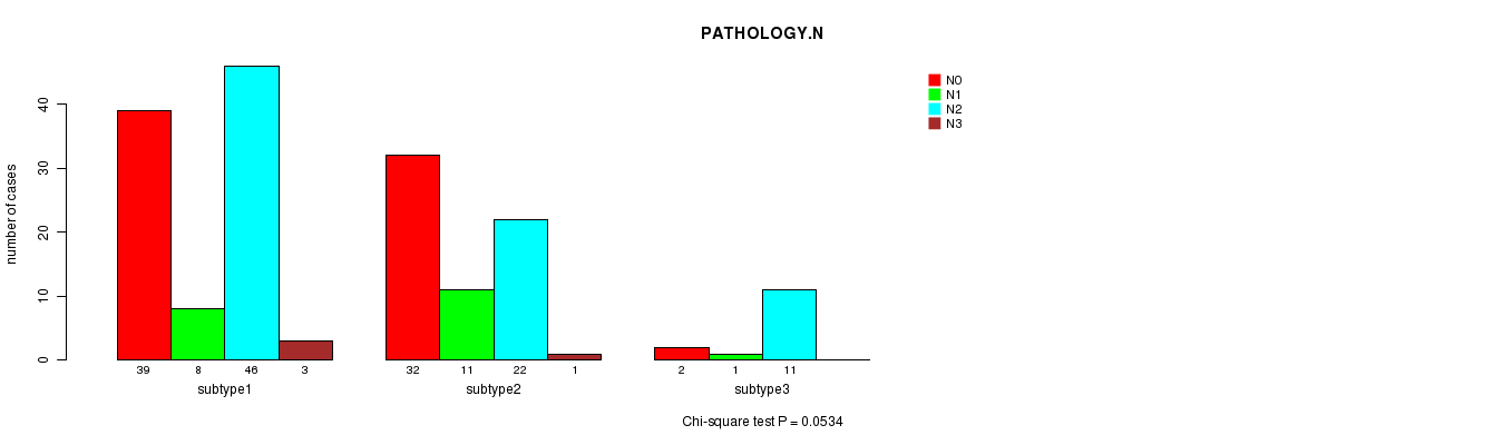 Figure S45. Get High-res Image Clustering Approach #6: 'MIRseq CNMF subtypes' versus Clinical Feature #5: 'PATHOLOGY.N'