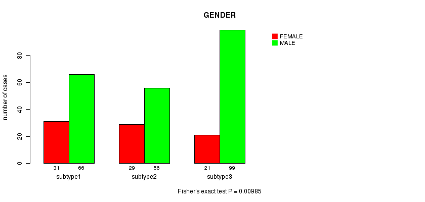 Consensus hierarchical clustering analysis on sequencing-based mRNA expression data identified 3 subtypes that correlate to 'GENDER'.