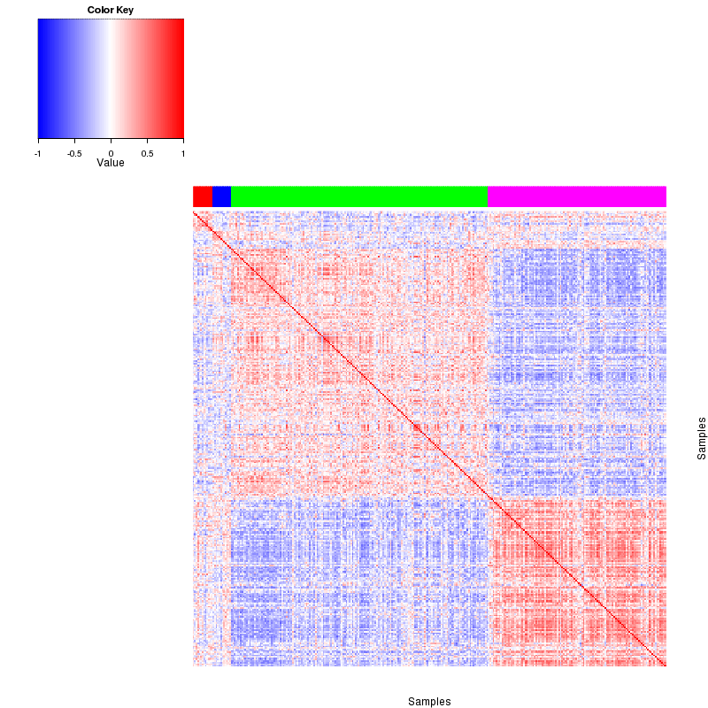 Figure 4. The consensus matrix after clustering shows 4 robust clusters with limited overlap between clusters.
