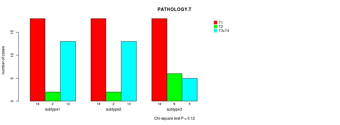 Figure S4. Get High-res Image Clustering Approach #1: 'mRNA CNMF subtypes' versus Clinical Feature #5: 'PATHOLOGY.T'