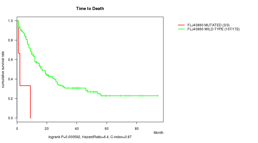 Figure S4. Get High-res Image Gene #37: 'FLJ43860 MUTATION STATUS' versus Clinical Feature #1: 'Time to Death'