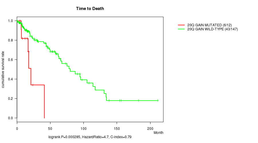 20q gain cnv correlated to 'Time to Death'.