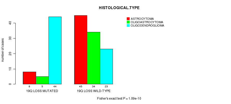 Figure S11. Get High-res Image Gene #46: '19q loss mutation analysis' versus Clinical Feature #5: 'HISTOLOGICAL.TYPE'