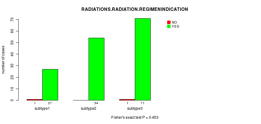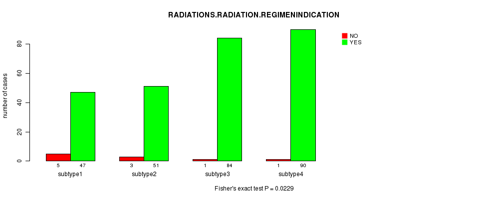 | RADIATIONS RADIATION REGIMENINDICATION | Fisher's exact test | 0.445 | 0.453 | 0.552 | 0.626 | 0.735 | 0.71 | 0.399 | 0.382 | 0.365 | 0.0229 |