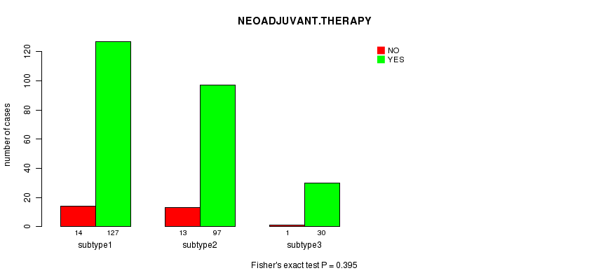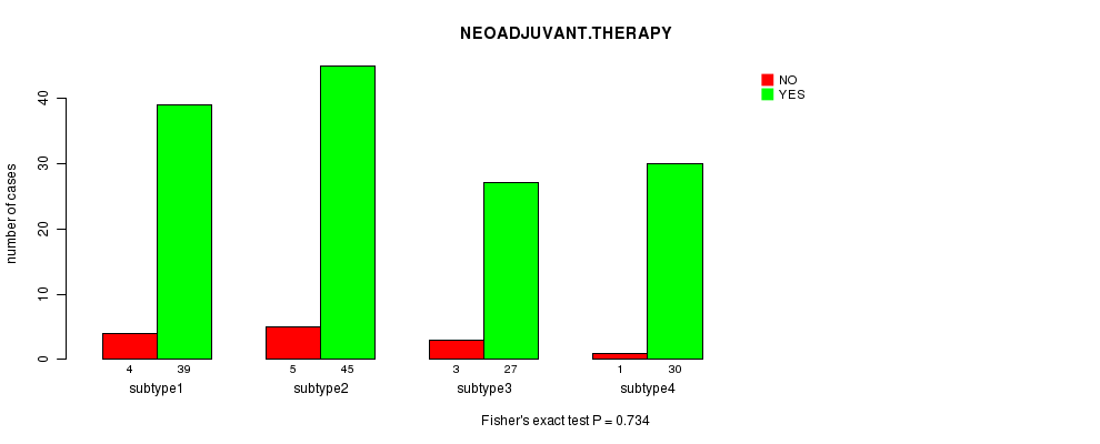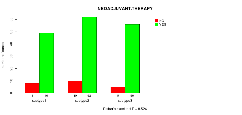 | NEOADJUVANT THERAPY | Fisher's exact test | 0.734 | 0.799 | 0.649 | 0.534 | 0.524 | 1 | 0.246 | 0.958 | 0.395 | 1 |