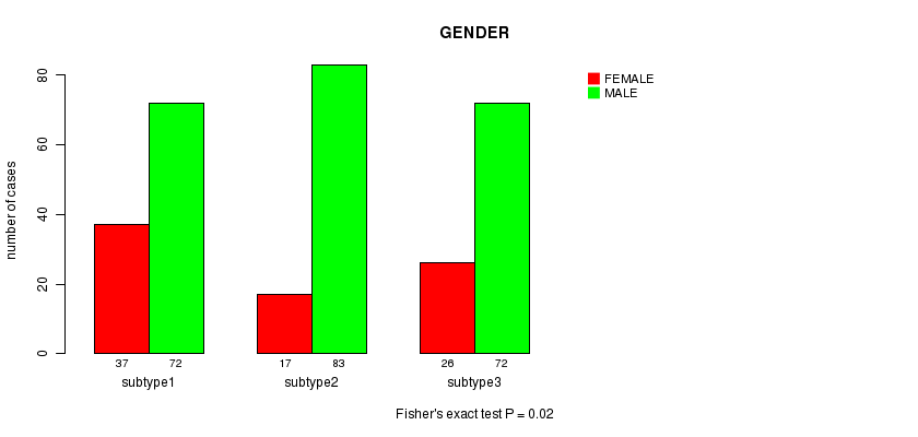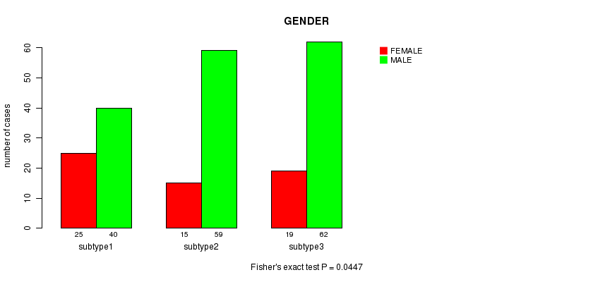| GENDER | Fisher's exact test | 0.382 | 0.00872 | 0.02 | 0.509 | 0.224 | 0.73 | 0.225 | 0.0447 | 0.652 | 0.0738 |