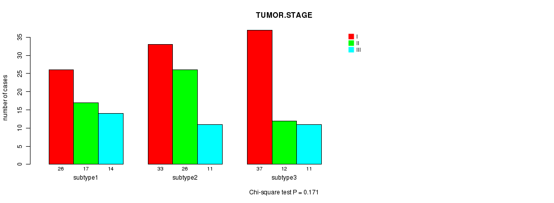 | TUMOR STAGE | Chi-square test | 0.798 | 0.617 | 0.76 | 0.606 | 0.171 | 0.139 | 0.668 | 0.564 | 0.0891 | 0.672 |