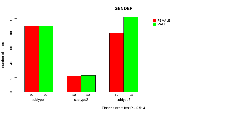 Figure S82. Get High-res Image Clustering Approach #10: 'MIRseq cHierClus subtypes' versus Clinical Feature #3: 'GENDER'