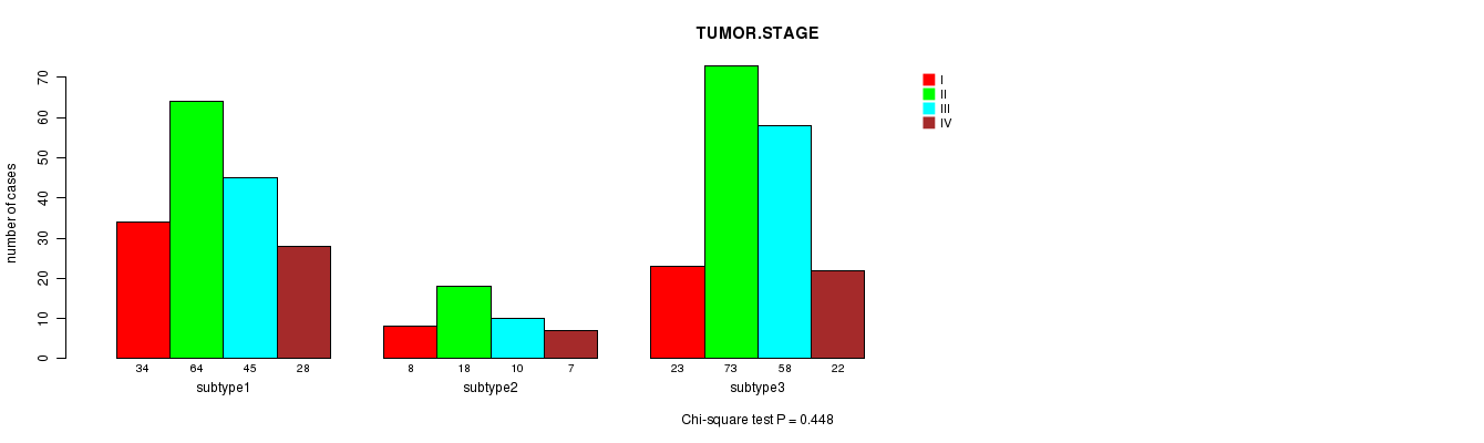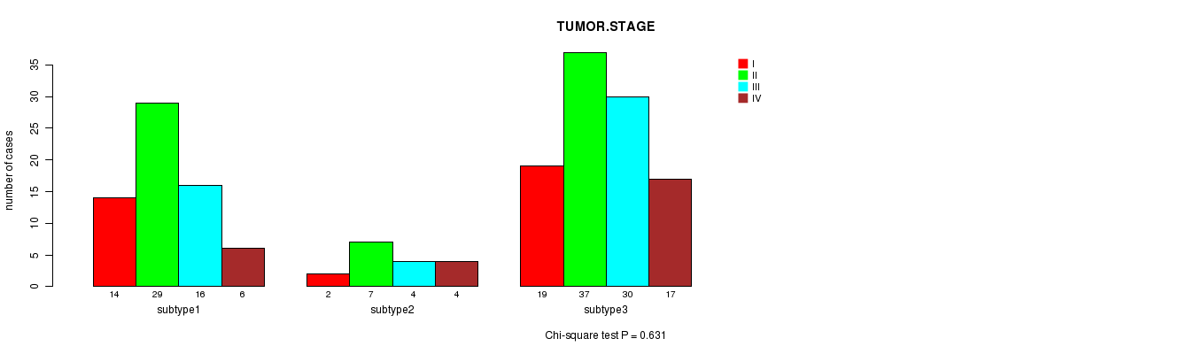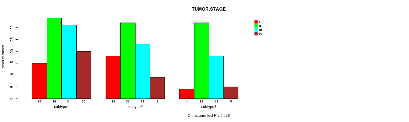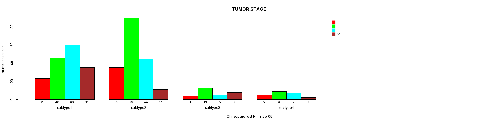 Figure S78. Get High-res Image Clustering Approach #9: 'MIRseq CNMF subtypes' versus Clinical Feature #8: 'TUMOR.STAGE'