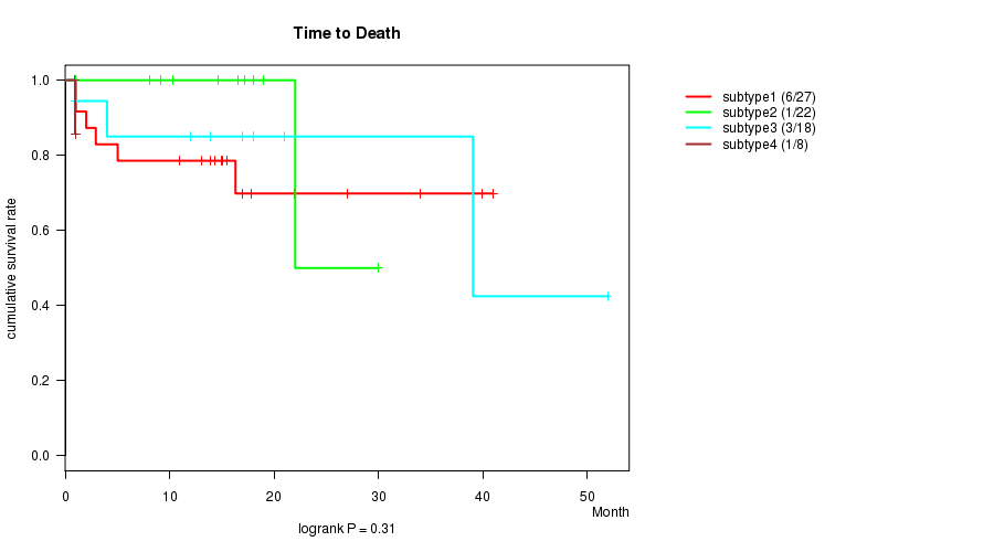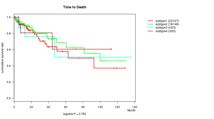 Table S2. Clustering Approach #1: 'mRNA CNMF subtypes' versus Clinical Feature #1: 'Time to Death'