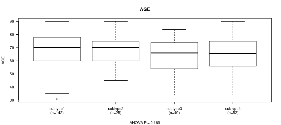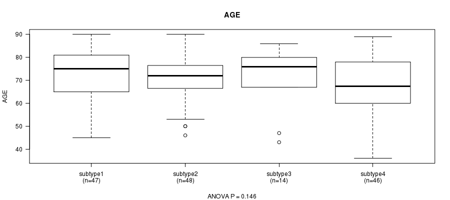 Table S3. Clustering Approach #1: 'mRNA CNMF subtypes' versus Clinical Feature #2: 'AGE'
