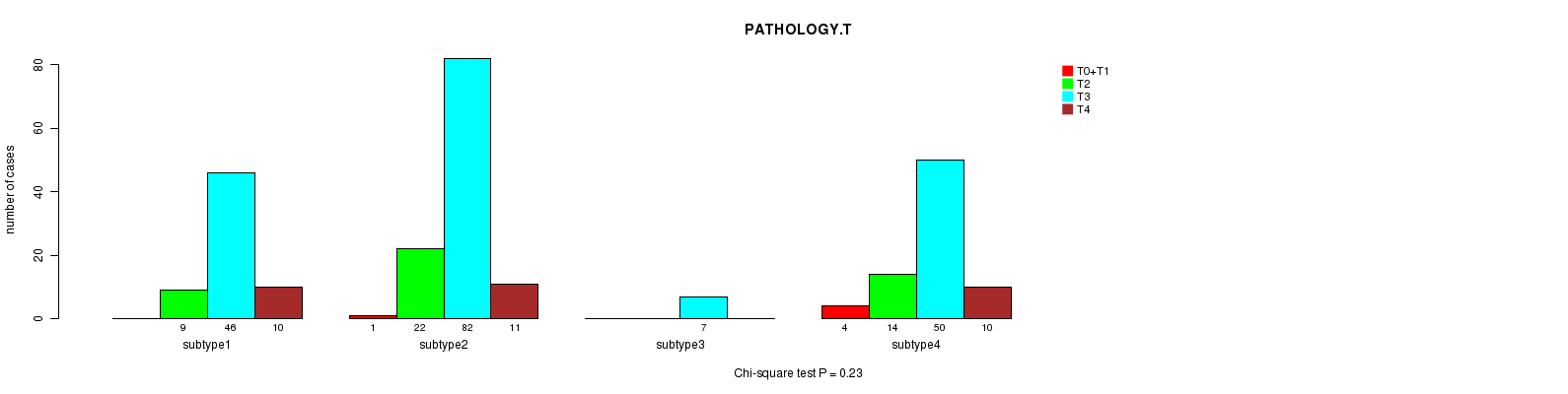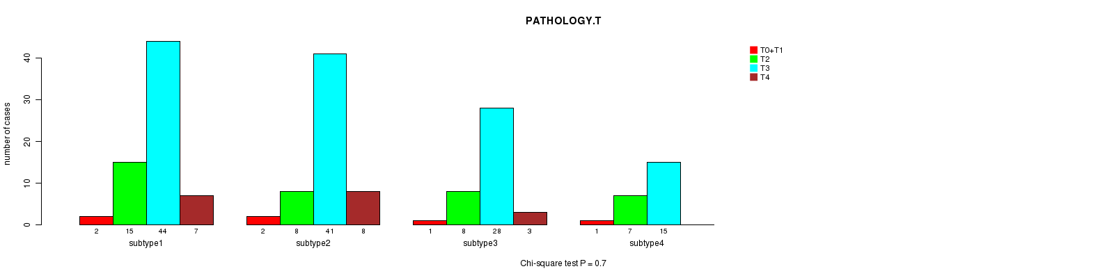 Figure S5. Get High-res Image Clustering Approach #1: 'mRNA CNMF subtypes' versus Clinical Feature #5: 'PATHOLOGY.T'