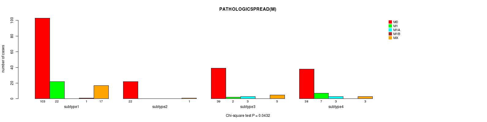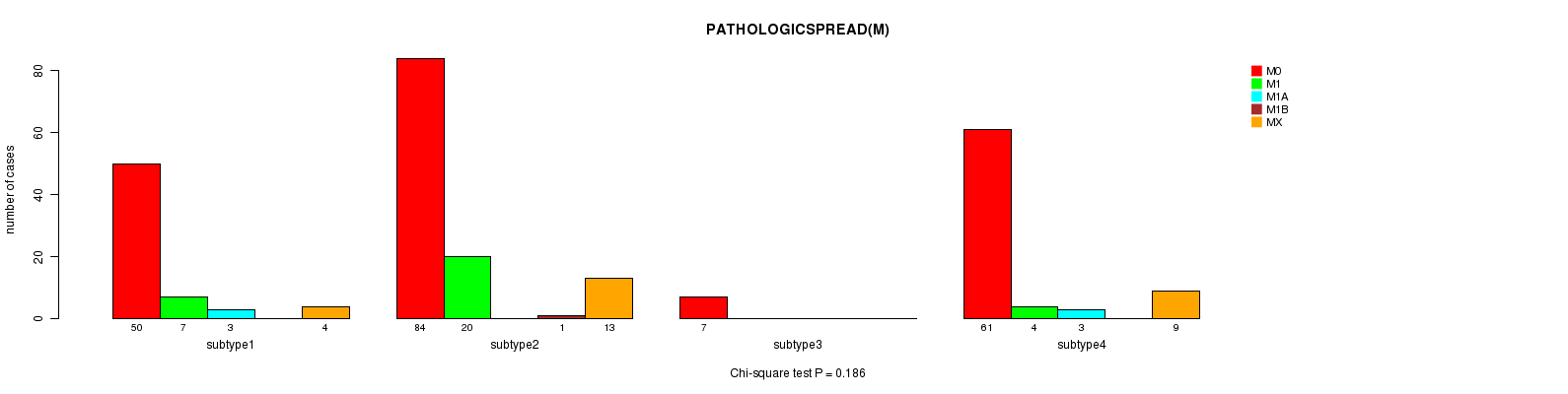 Consensus hierarchical clustering analysis on RPPA data identified 4 subtypes that correlate to 'PATHOLOGICSPREAD(M)'.