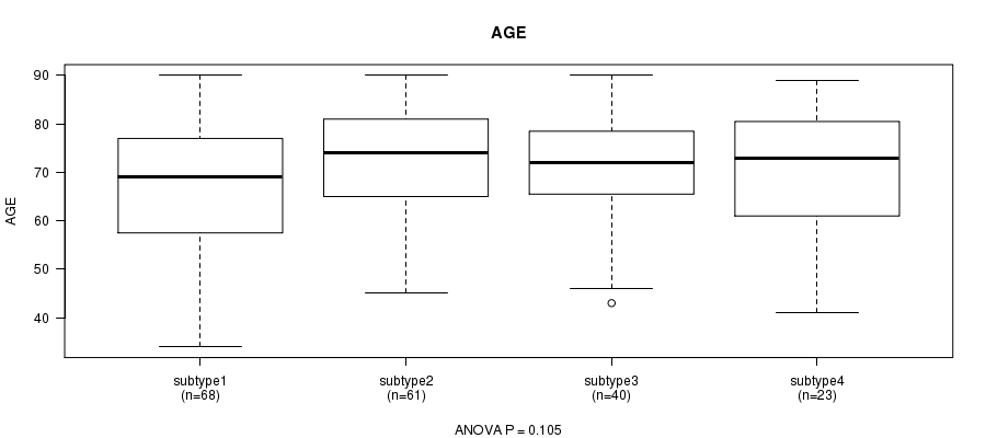 Figure S2. Get High-res Image Clustering Approach #1: 'mRNA CNMF subtypes' versus Clinical Feature #2: 'AGE'