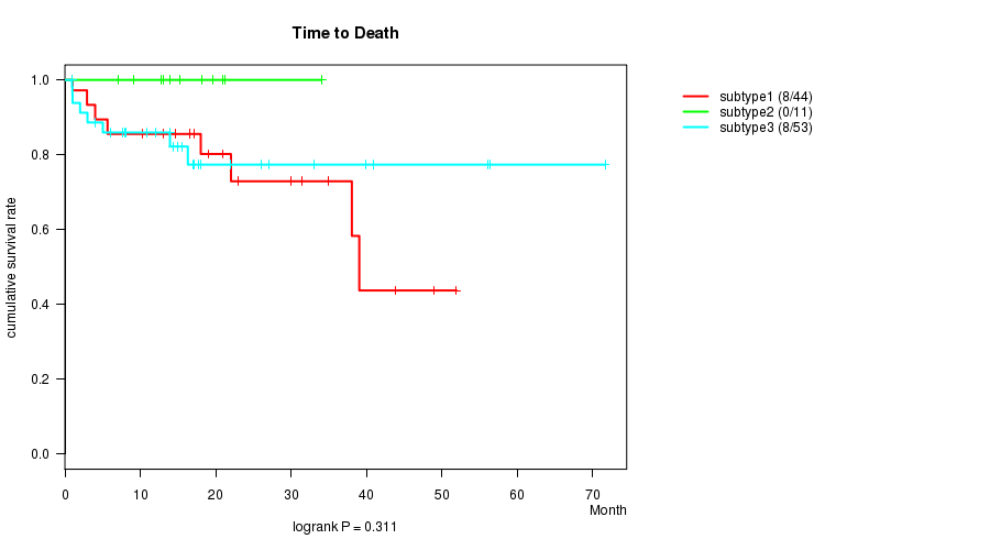 Figure S1. Get High-res Image Clustering Approach #1: 'mRNA CNMF subtypes' versus Clinical Feature #1: 'Time to Death'
