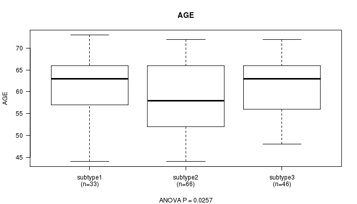 Table S11. Clustering Approach #3: 'RNAseq CNMF subtypes' versus Clinical Feature #2: 'AGE'