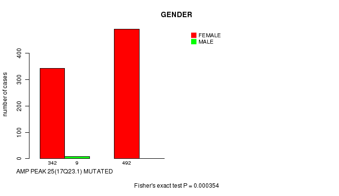 Amp Peak 25(17q23.1) cnvs correlated to 'GENDER'.