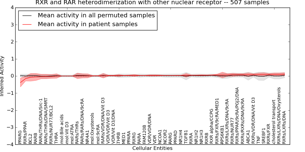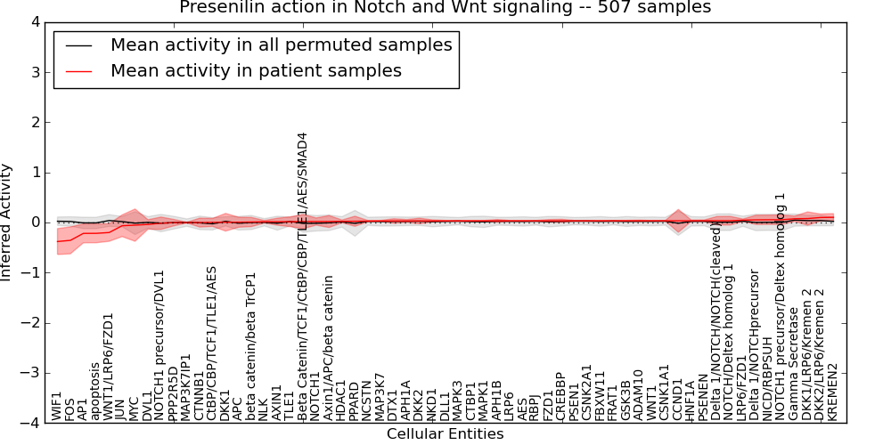 PAthway Representation and Analysis by Direct Inference on Graphical Models (PARADIGM) predicts the activity of a diverse set of molecular concepts such as genes, complexes, and processes. The predicted activities are called Inferred Pathway Levels (IPLs) and are derived from a probabilistic belief propagation strategy that incorporates multimodal data such as copy number and gene expression estimates with a concept's pathway context.
