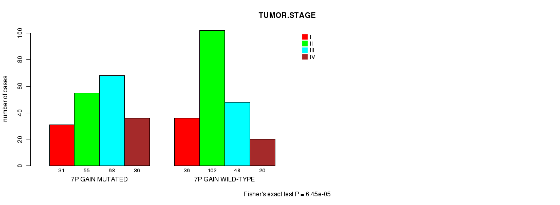 7p gain cnv correlated to 'TUMOR.STAGE'.