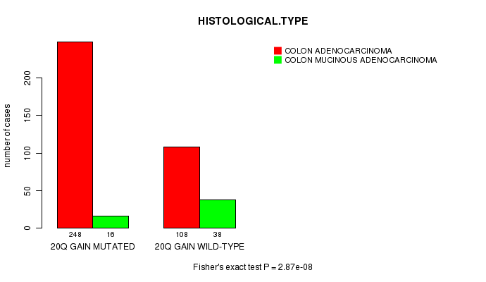 Figure S8. Get High-res Image Gene #36: '20p gain mutation analysis' versus Clinical Feature #4: 'HISTOLOGICAL.TYPE'
